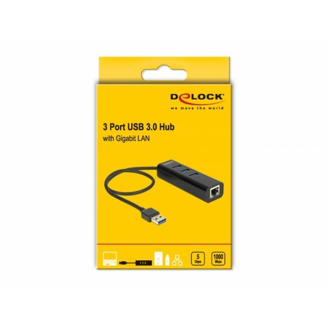 Delock USB 3.0 Hub 3 Port + 1 Port Gigabit LAN