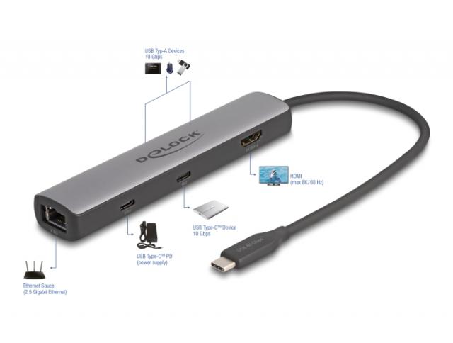 Delock USB 40 Gbps USB Type-C Docking Station 8K - HDMI/USB 10 Gbps/2.5 Gigabit LAN/PD 3.0 100 W