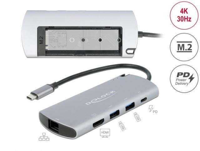 Docking station Delock USB Type-C™ cu slot M.2 - 4K HDMI / USB / LAN / PD 3.0