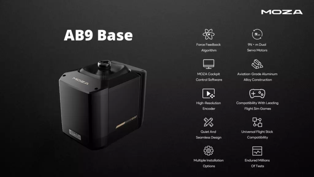Fiecare tip de aeronavă oferă un feedback unic în ceea ce privește mișcarea și forța. Pentru a răspunde acestor nevoi, MOZA a introdus baza cu Active Force Feedback, baza MOZA AB9, ca piatră de temelie a liniei sale de simulare a zborului. Algoritmul lor proprietar de feedback al forței asigură răspunsuri precise și realiste, oferind piloților o senzație autentică a comenzilor aeronavei.