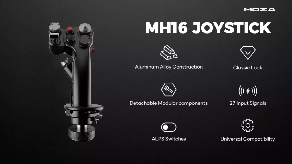 Joystick-ul MHG16 reproduce comenzile avioanelor de luptă reale, oferind o experiență de pilotaj autentică.