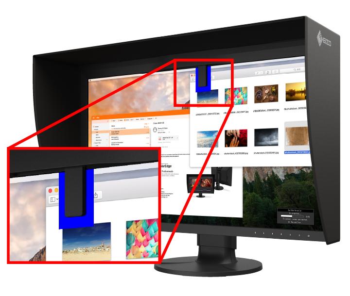 The ColorEdge CG2700X comes bundled with a light shielding hood that effectively prevents glare on the screen caused by ambient lighting. The hood is newly designed to be lightweight and easily attaches to the monitor magnetically without needing to connect separate parts.