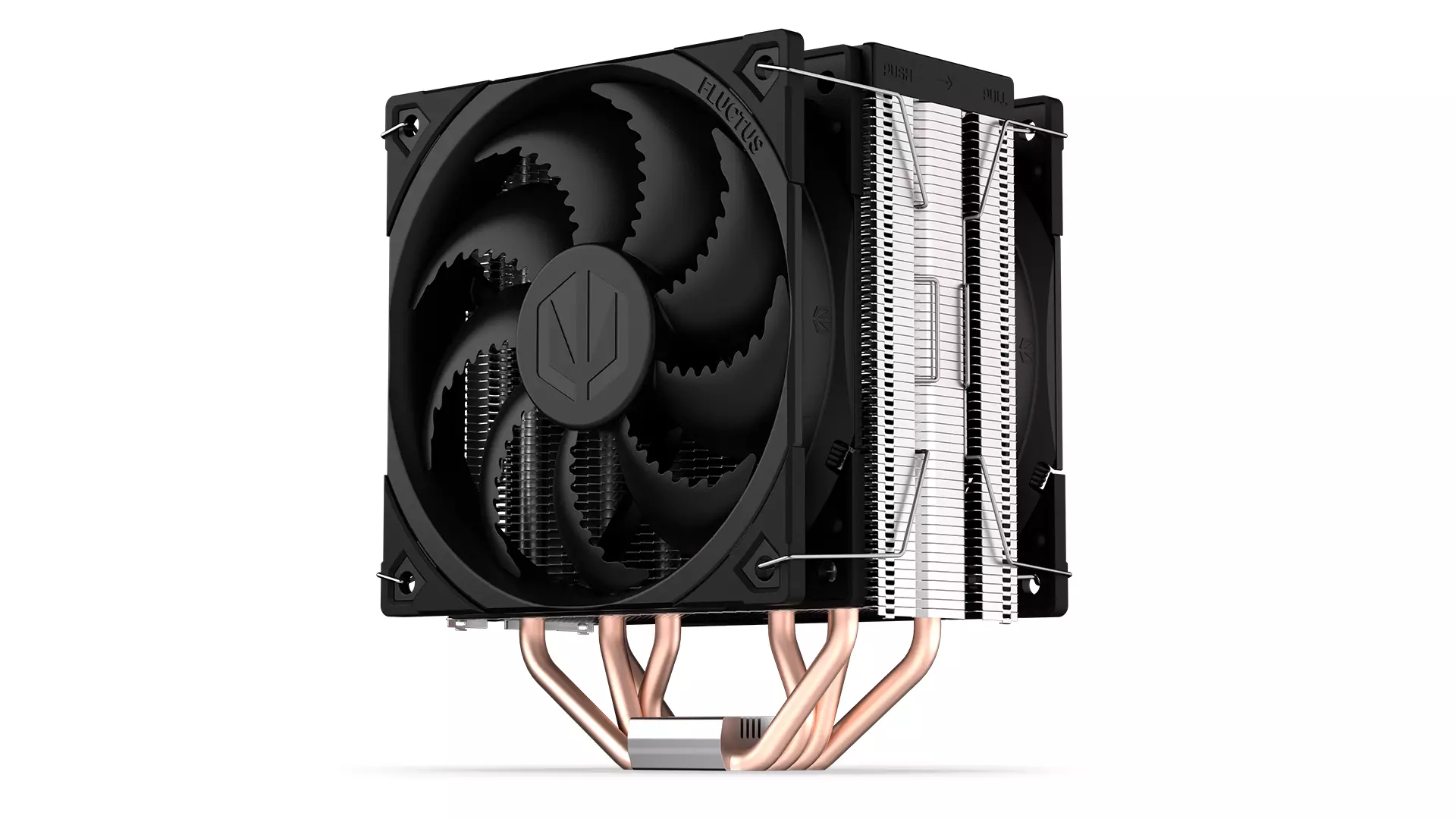 The strength of the ENDORFY Fera 5 Dual Fan lies in its two Fluctus 120 PWM fans with optional air conditioning semi-passive mode. Between them, we installed a densely ribbed heat sink – the setup works in a push-pull configuration, which lowers your processor’s temperature. It's like putting the computer in a fridge... The difference is that you can't mount a fridge on popular CPU sockets – unlike the ENDORFY Fera 5 Dual Fan ;)