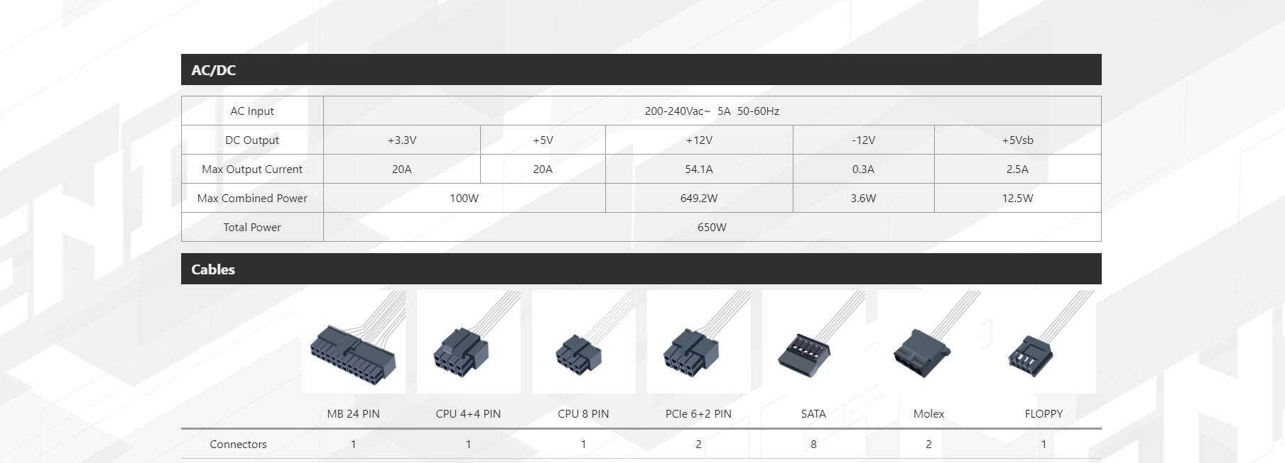 | Rated Output Power | 650W |