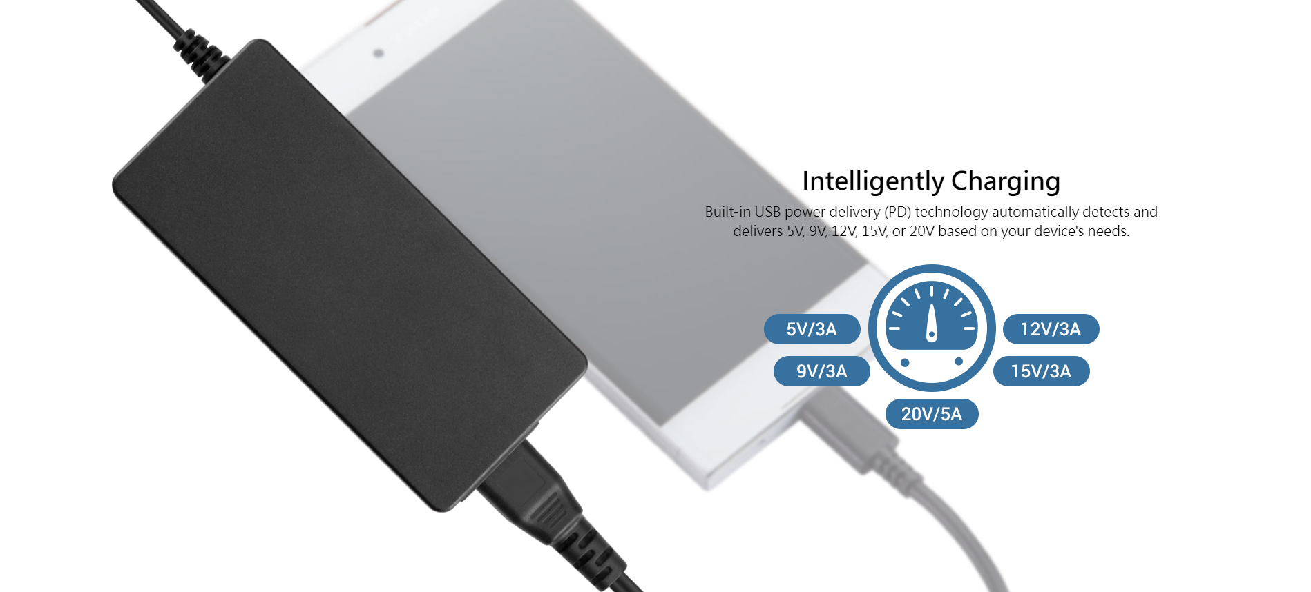 | Output Current | 5V / 3A; 9V / 3A; 12V / 3A; 15V / 3A; 20V / 5A |