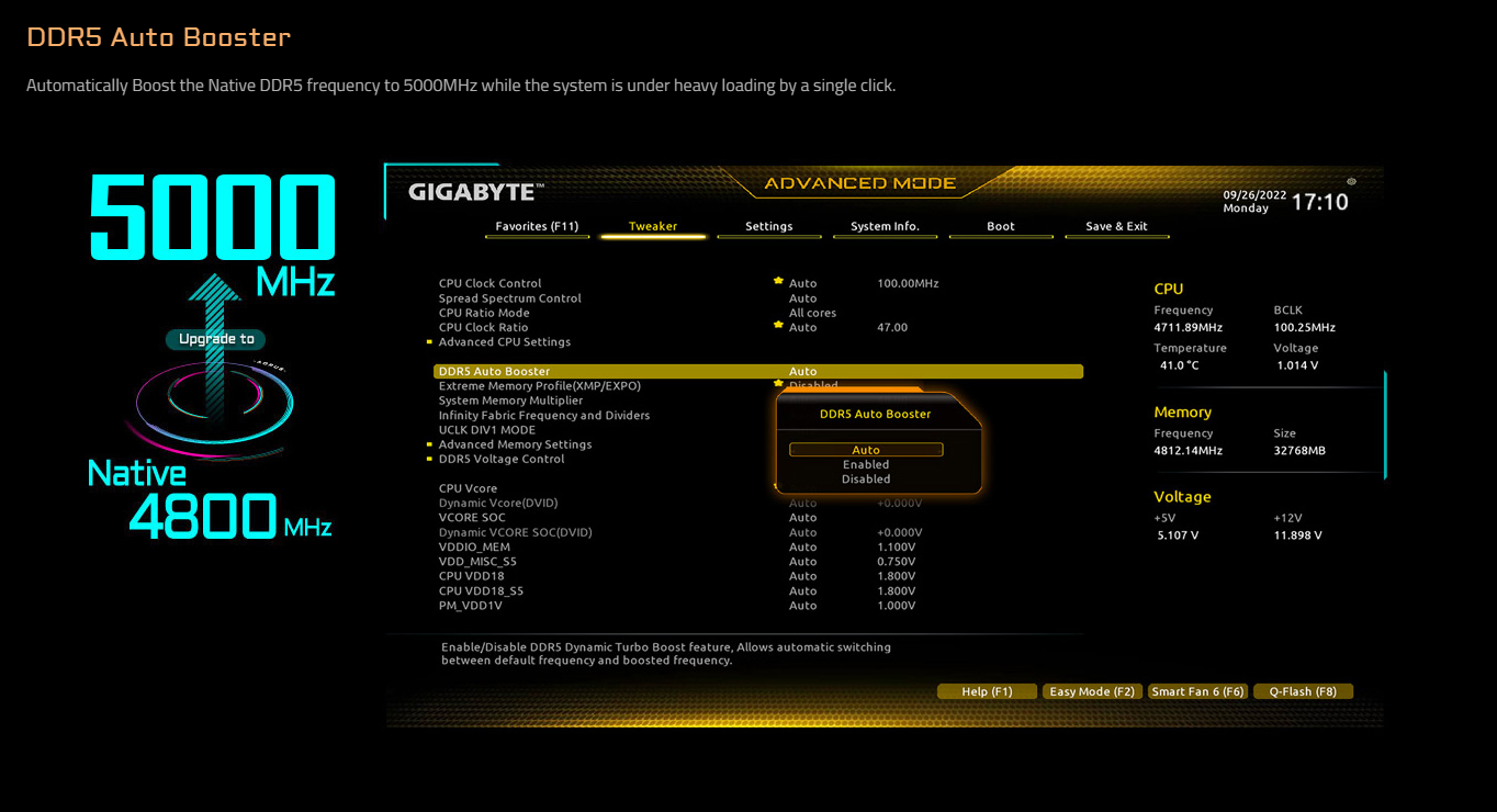 The EASY MODE shows important hardware information in one page including CPU clock, Memory, Storage, Fan.