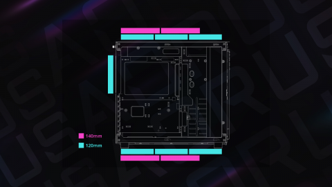 | Case Form Factor | Mid Tower | Fan Support | Bottom : 120mm x3 / 140mm x2 Top : 120mm x3 / 140mm x2 Rear : 120mm x1 |