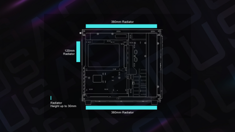 | M/B Type | Mini ITX / Micro ATX / ATX | Radiator Support | Bottom : Max 360mm Top : Max 360mm Rear : Max 120mm |