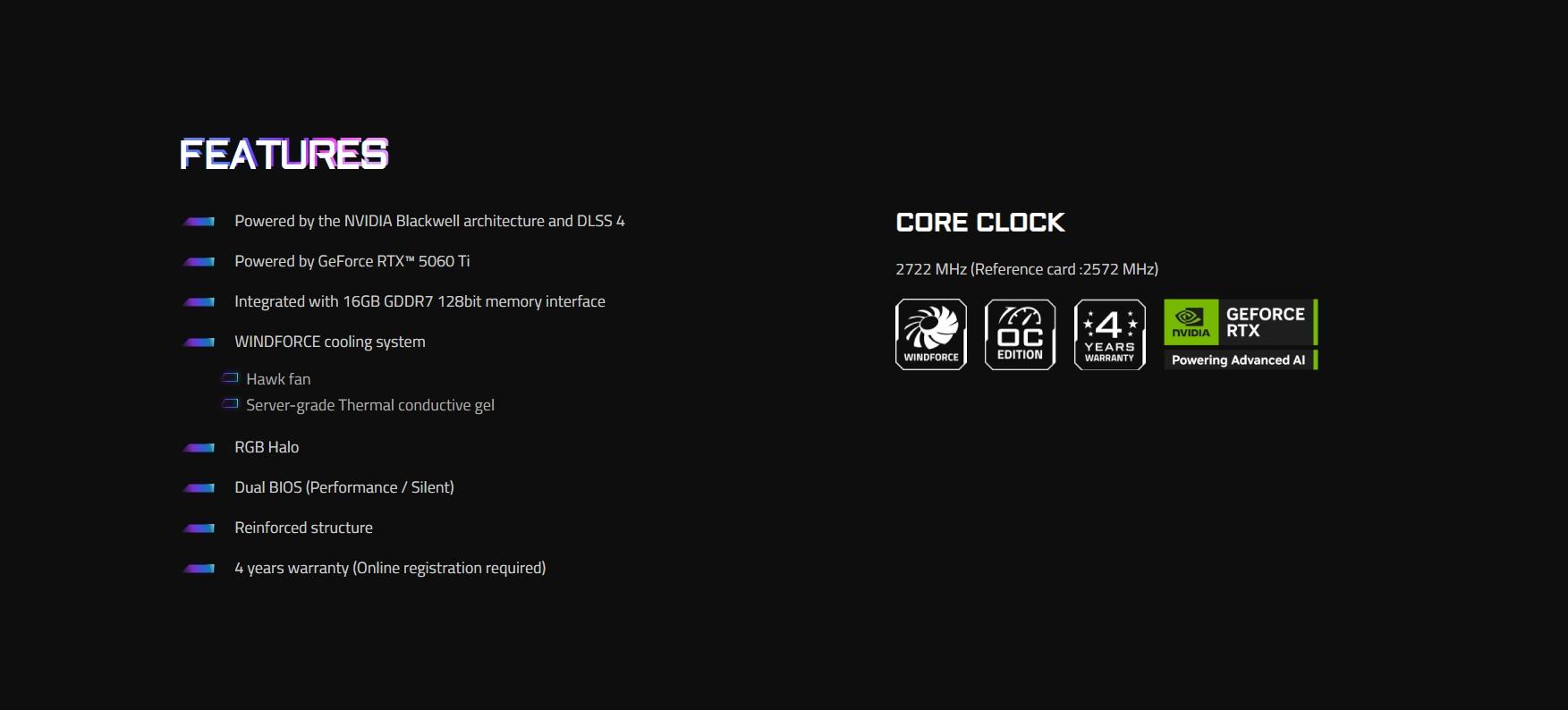 GIGABYTE AORUS GeForce RTX 5060 Ti ELITE 16G