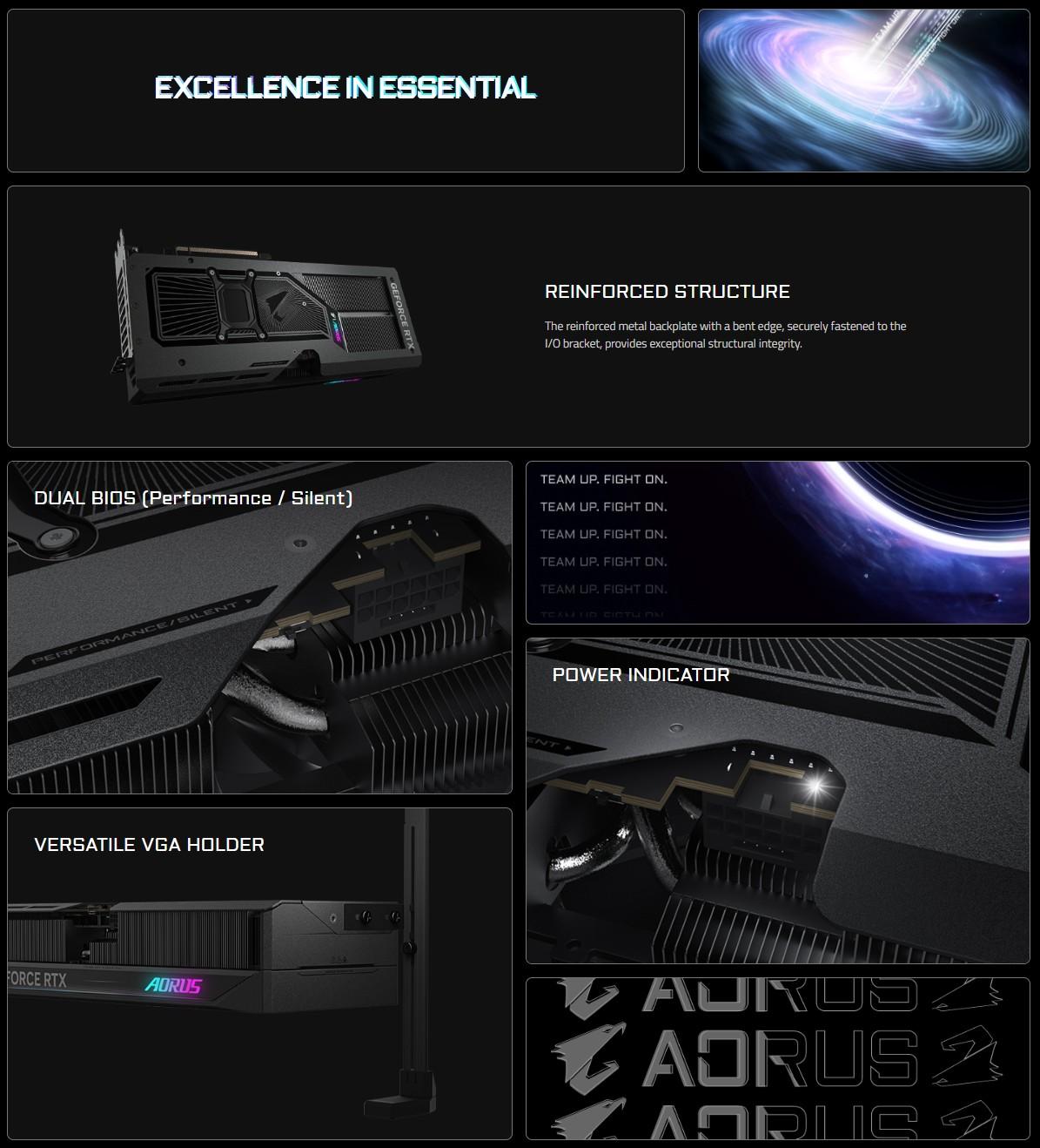 | Digital max resolution | 7680 x 4320 | Accessories | 1. Quick guide 2. Warranty registration 3. 1x 12V-2x6 to 2x PCIe 8pin adapter 4. AORUS identity stickers 5. AORUS metal sticker 6. Versatile VGA holder 7. Versatile VGA holder manual |