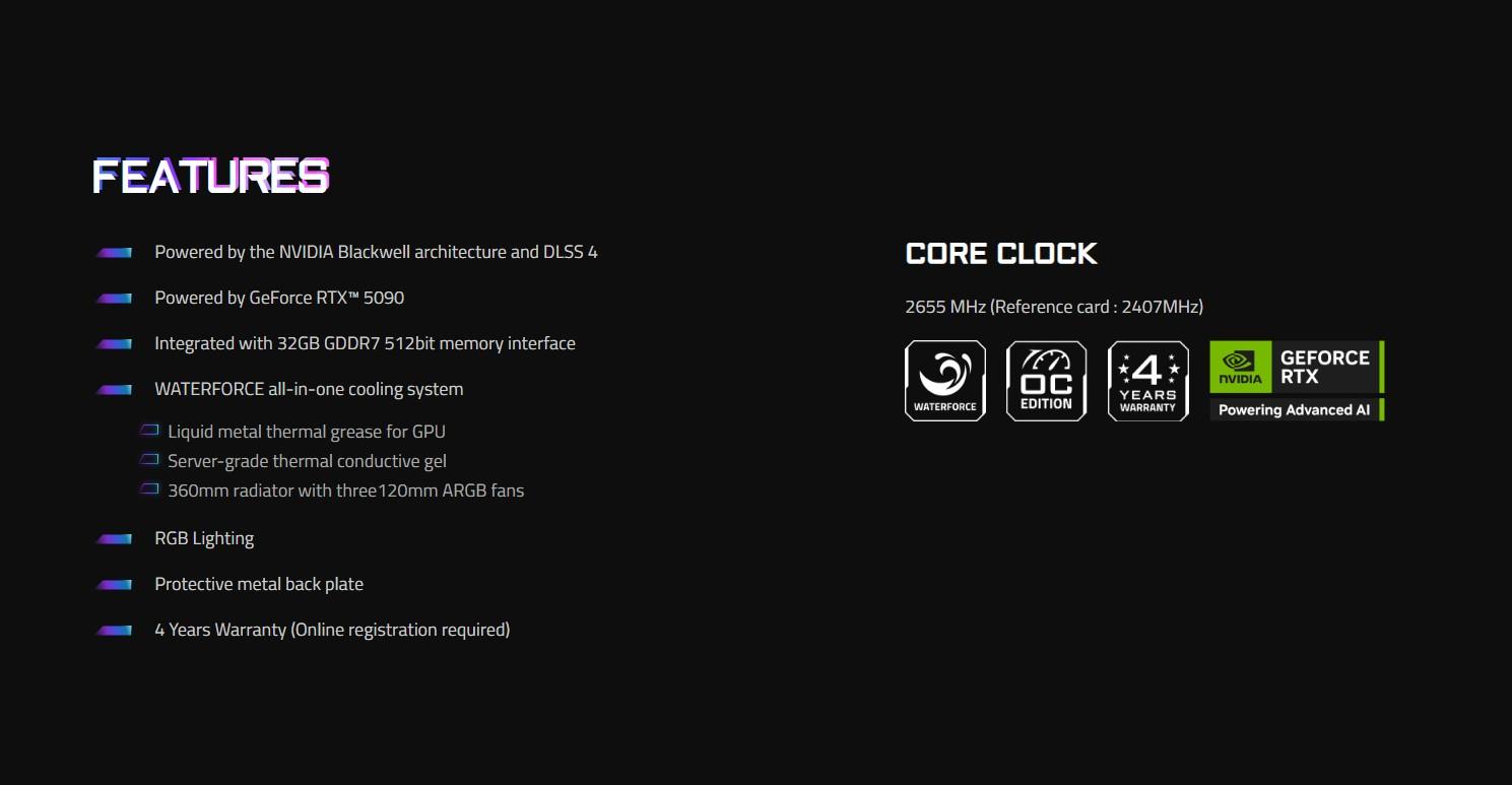 GIGABYTE AORUS GeForce RTX 5090 XTREME WATERFORCE 32G