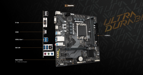 2 x USB 2.0/1.1 ports 1 x D-Sub port 1 x HDMI port 4 x USB 3.2 Gen 1 ports 1 x RJ-45 port 3 x audio jacks |