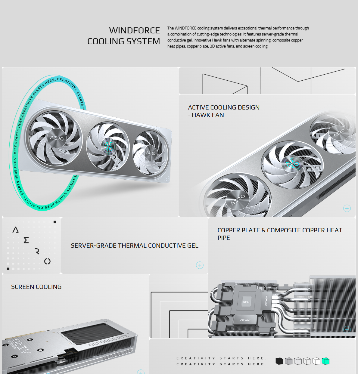 - Racire WINDFORCE: Sistem cu ventilatoare Hawk, heatpipe-uri compozite, placa de cupru si gel termic de nivel server pentru disipare eficienta si silentiozitate