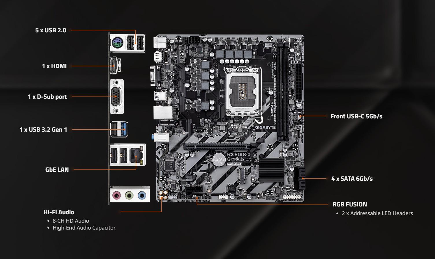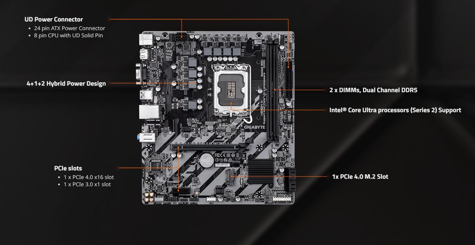 Placa de baza GIGABYTE H810M H este o solutie fiabila si accesibila, conceputa pentru utilizatorii care doresc sa construiasca un sistem stabil pentru uz general, office sau multimedia, dar care folosesc procesoare din cea mai noua generatie Intel.