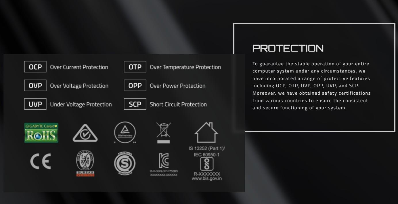 GIGABYTE P750BS 750W este o sursa de alimentare fiabila si eficienta, certificata 80 PLUS Bronze, ideala pentru sisteme de gaming sau workstation-uri de nivel mediu. Cu un ventilator silentios FDB, cabluri texturate si multiple protectii integrate, acest model ofera stabilitate, durabilitate si un design curat, potrivit pentru constructii moderne.