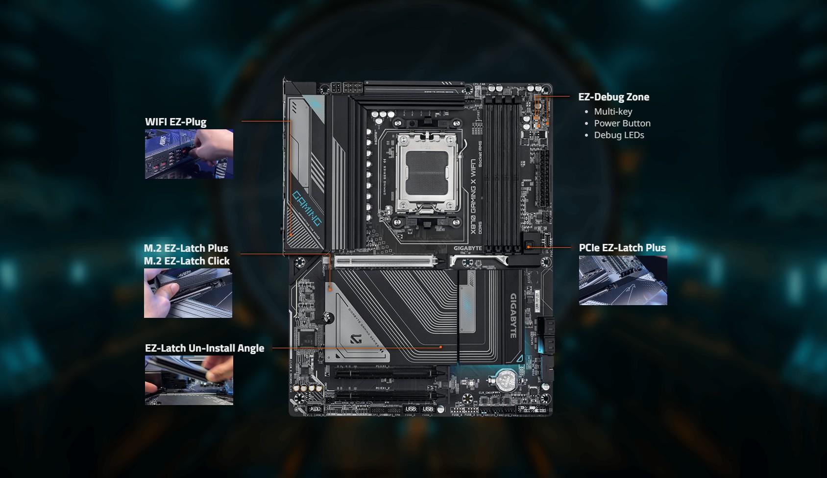 | CPU | AMD Socket AM5, support for: AMD Ryzen 9000 Series Processors AMD Ryzen 8000 Series Processors AMD Ryzen 7000 Series Processors (Go to GIGABYTE's website for the latest CPU support list.) |