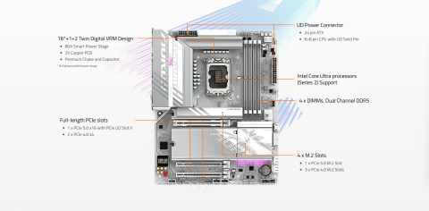 | CPU | LGA1851 socket: Support for Intel Core Ultra Processors L3 cache varies with CPU * Please refer to "CPU Support List" for more information. |