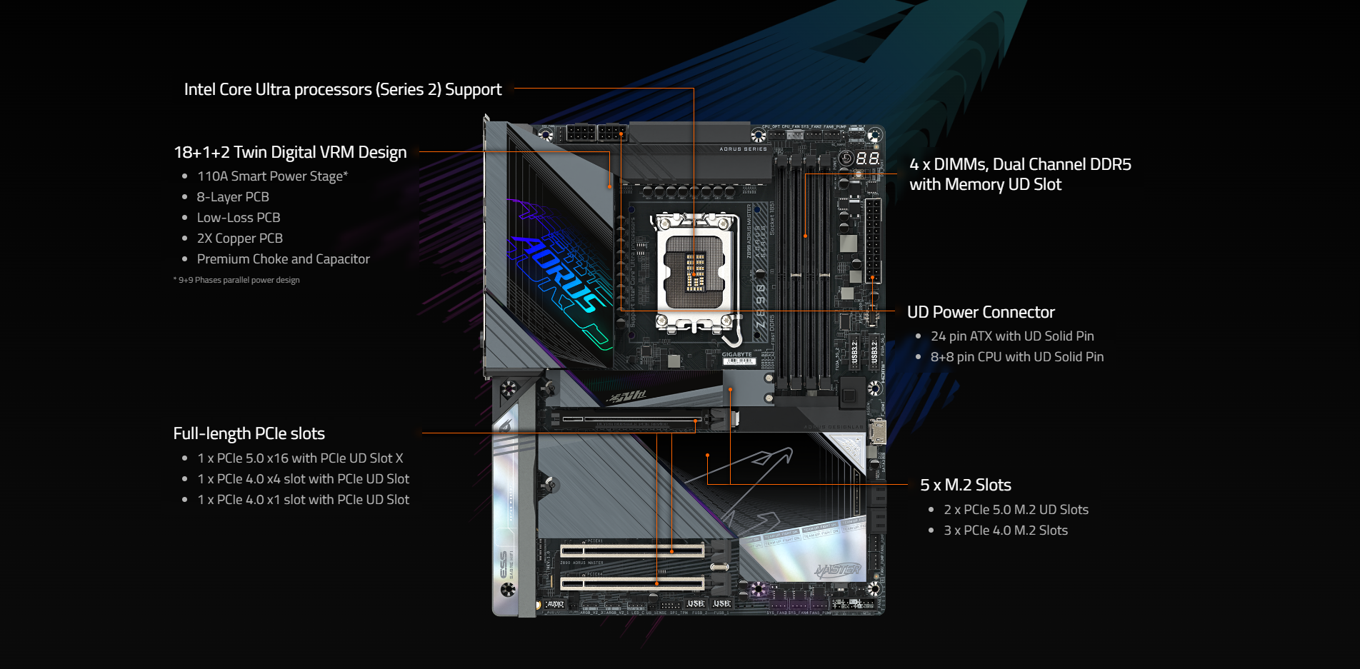 • Ultra-Fast Storage : 5*M.2 slots, including 2* PCIe 5.0 x4