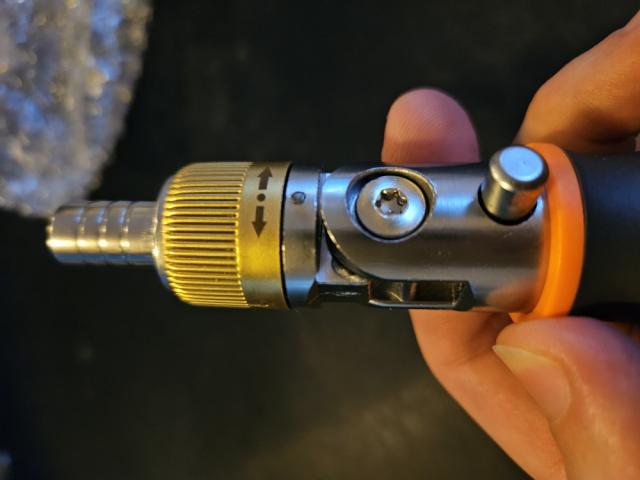 Surubelnita dispune de un brat mobil - drept/45°/90° (trebuie apasat butonul metalic).