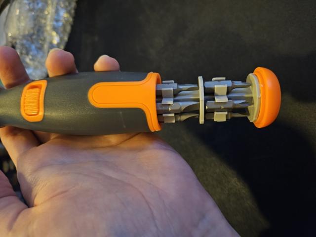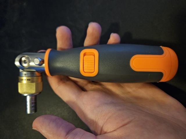 Surubelnita are o functie de clichet - reglabila prin intermediul inelului auriu, cu trei directii: in sensul acelor de ceasornic/in sens invers acelor de ceasornic/ fara rotatie.