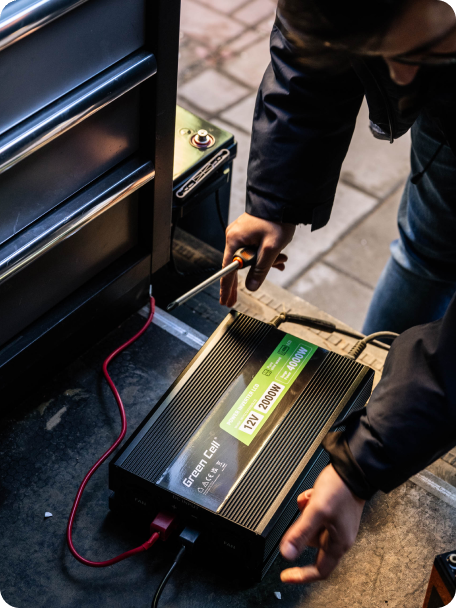 Connect the inverter to the battery, switch it on and use it! You will be able