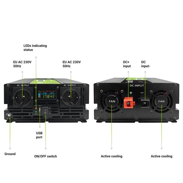Întrebare despre Green Cell PowerInverter LCD 12 V 2000 W/4000 W Pure sine wave inverter