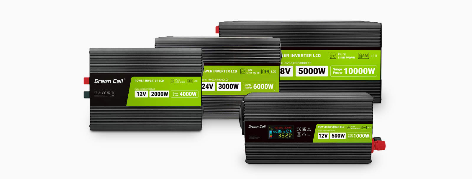Green Cell PowerInverter LCD 12 V 500 W/1000 W Pure sine wave inverter