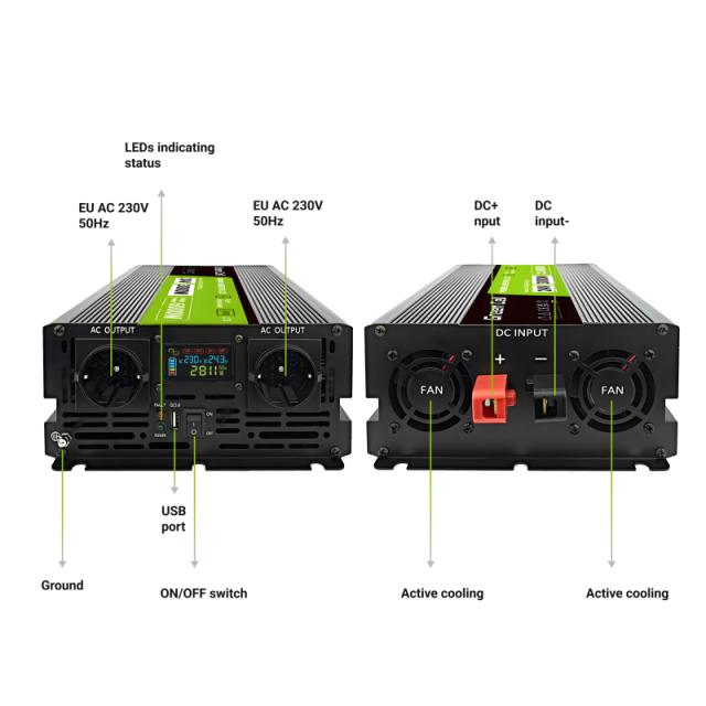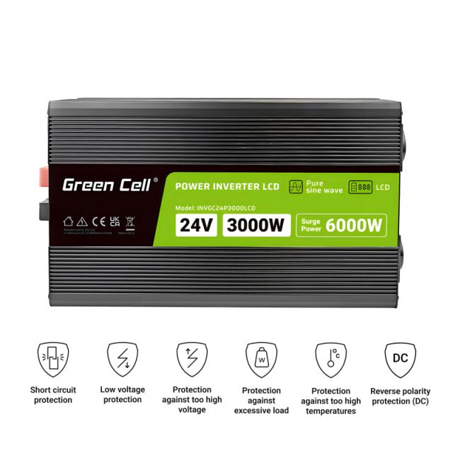 Green Cell PowerInverter LCD 24 V 3000 W/6000 W Pure sine wave inverter