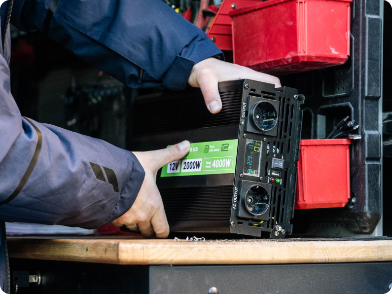 Connect the inverter to the battery, switch it on and use it! You will be able