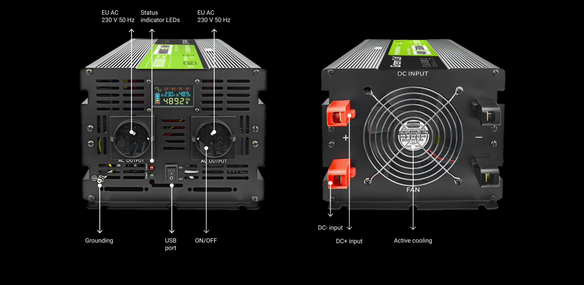 Întrebare despre Green Cell PowerInverter LCD 48 V 5000 W/10000 W Pure sine wave inverter