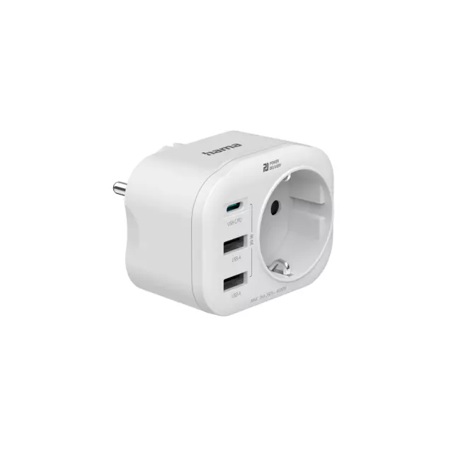 Priza multiport Hama, 4 prize, 1 x USB-C PD, 2 x USB-A, 20W, Alb