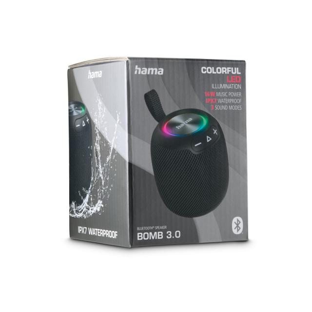 Boxa portabila HAMA Bomb 3.0 Bluetooth, Waterproof IPX7, LED, 16 W, Negru