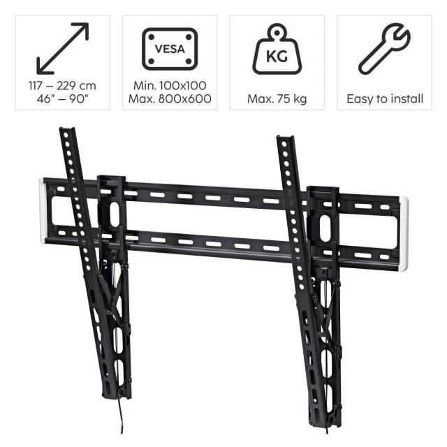 | Material | Steel Plate | Screen Dimensions | 117 cm (46"), 119 cm (47"), 122 cm (48"), 123 cm (49"), 127 cm (50"), 129 cm (51"), 132 cm (52"), 137 cm (54"), 140 cm (55"), 147 cm (58"), 152 cm (60"), 163 cm (64"), 165 cm (65"), 178 cm (70"), 191 cm (75"), 198 cm (78"), 200 cm (79"), 203 cm (80"), 213 cm (84"), 216 cm (85"), 228,6 cm (90"), 247,65 cm (97,5"), 248,92 cm (98"), 254 cm (100") |