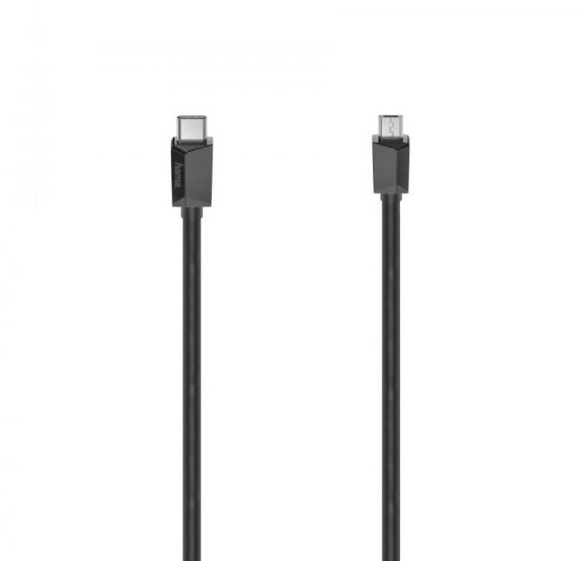 Cablu HAMA, USB-C tata - Micro USB B tata, 480 Mbit/s, 0.75 m, Essential, Negru