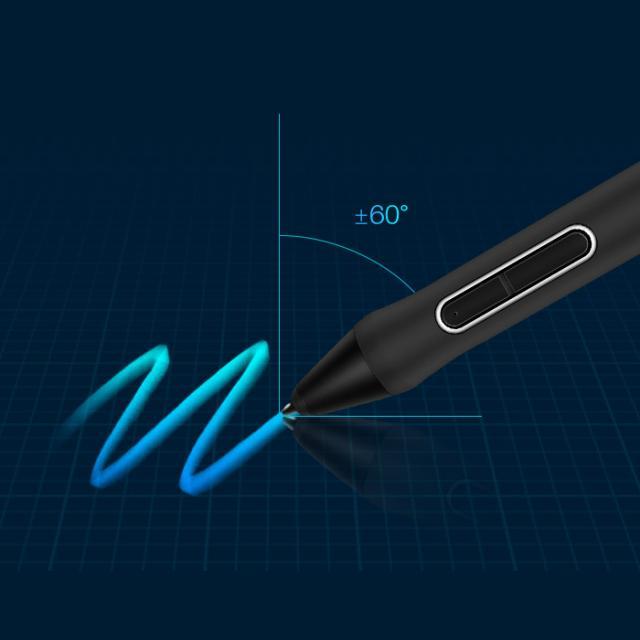Cu algoritmul unic de compensare a inclinarii dezvoltat de Huion, KD200 poate detecta cu precizie varful stiloului si presiunea stiloului digital, chiar daca acesta este inclinat cu ±60°. Prin urmare, utilizatorii pot inclina stiloul si pot adauga umbrire vibrant, fara a fi nevoie sa ajusteze peria de pe software din cand in cand.