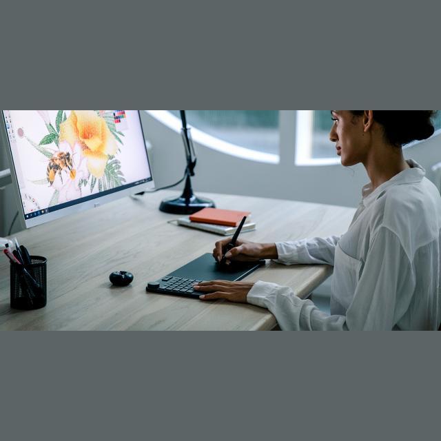 Integrarea tabletei stilou, a tastaturii si a controlerului cu cadran creeaza un studio de design foarte eficient pentru lucratorii creativi. Echipat cu cele mai utilizate combinatii de taste, nu este nevoie de tastatura suplimentara. Bucurati-va de o experienta de utilizator lina de la prima miscare.