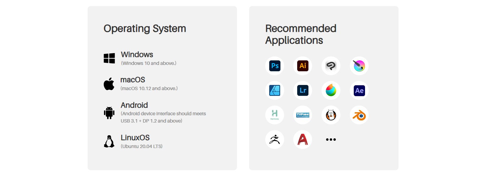 | Pen Technology | PenTech 4.0 | OS Support | Windows 10 or later, macOS 10.12 or later, Android 6.0 or later, Linux(Ubuntu 20.04 LTS) |