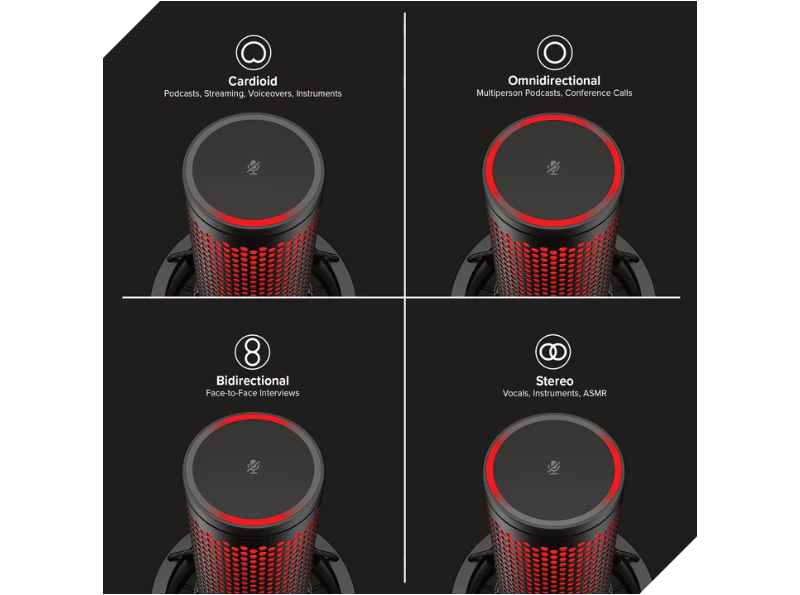 the versatile QuadCast 2’s polar patterns (cardioid,