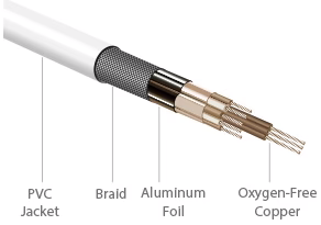 Multiple shields to protect against outside interference ensures a purer digital signal and provides a clearer sound and picture. PVC jacket with durable, long-lasting construction.