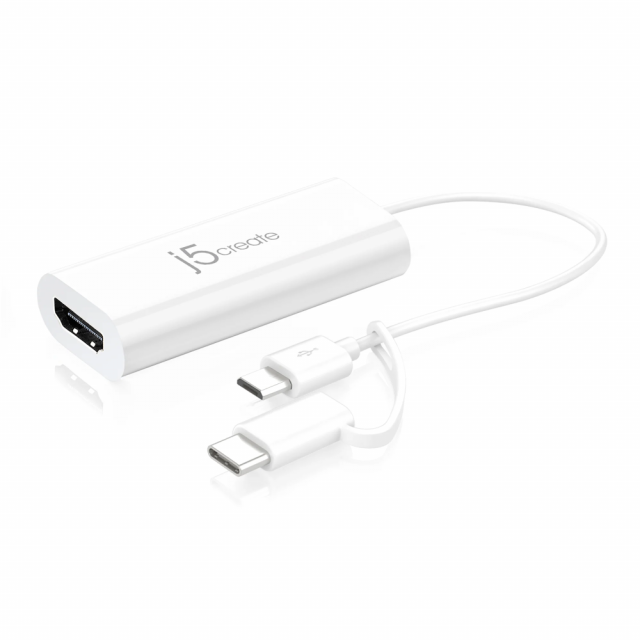 Adaptor video j5create JUA165C, Android USB, USB-C/USB Micro-B tata - HDMI mama, Alb