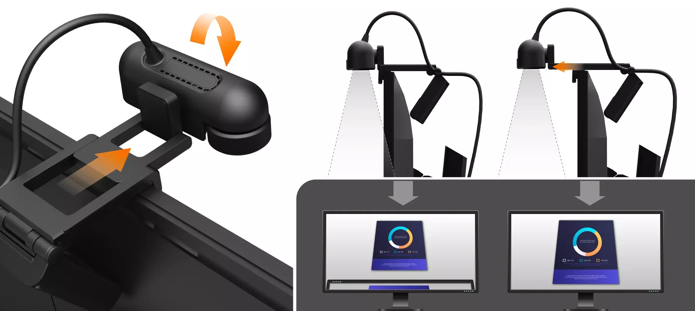 - Design 2-in-1, functioneaza ca o camera de documente si camera web