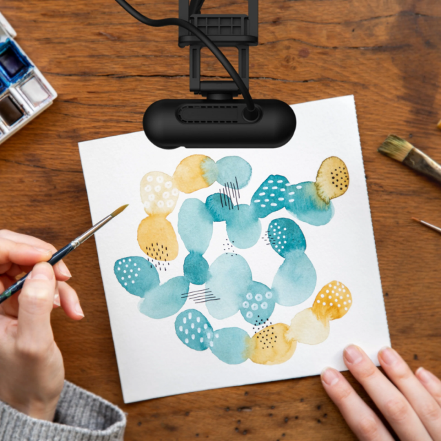 A two-way design that can be used for overhead video recording, live demos, distance learning, remote work, and video conferences.