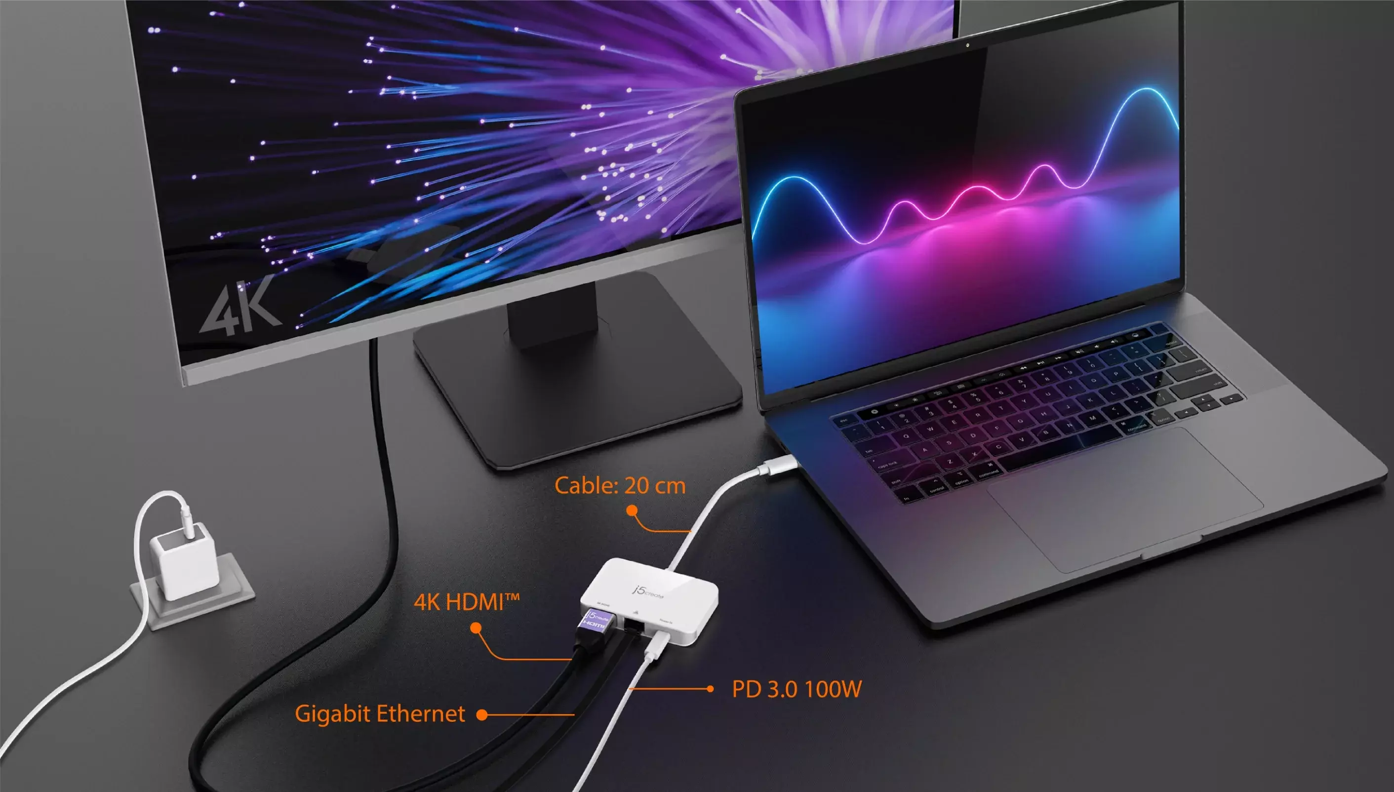 This device allows you to add an additional 4K HDMI monitor and Gigabit Ethernet