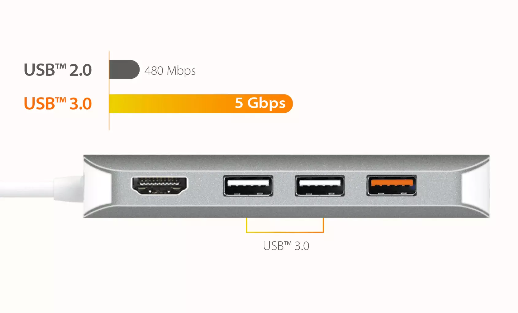 - USB 3.1 Gen 1 ofera o viteza de transfer de pana la 5 Gbps, care este cu 10 ori mai rapida decat USB 2.0