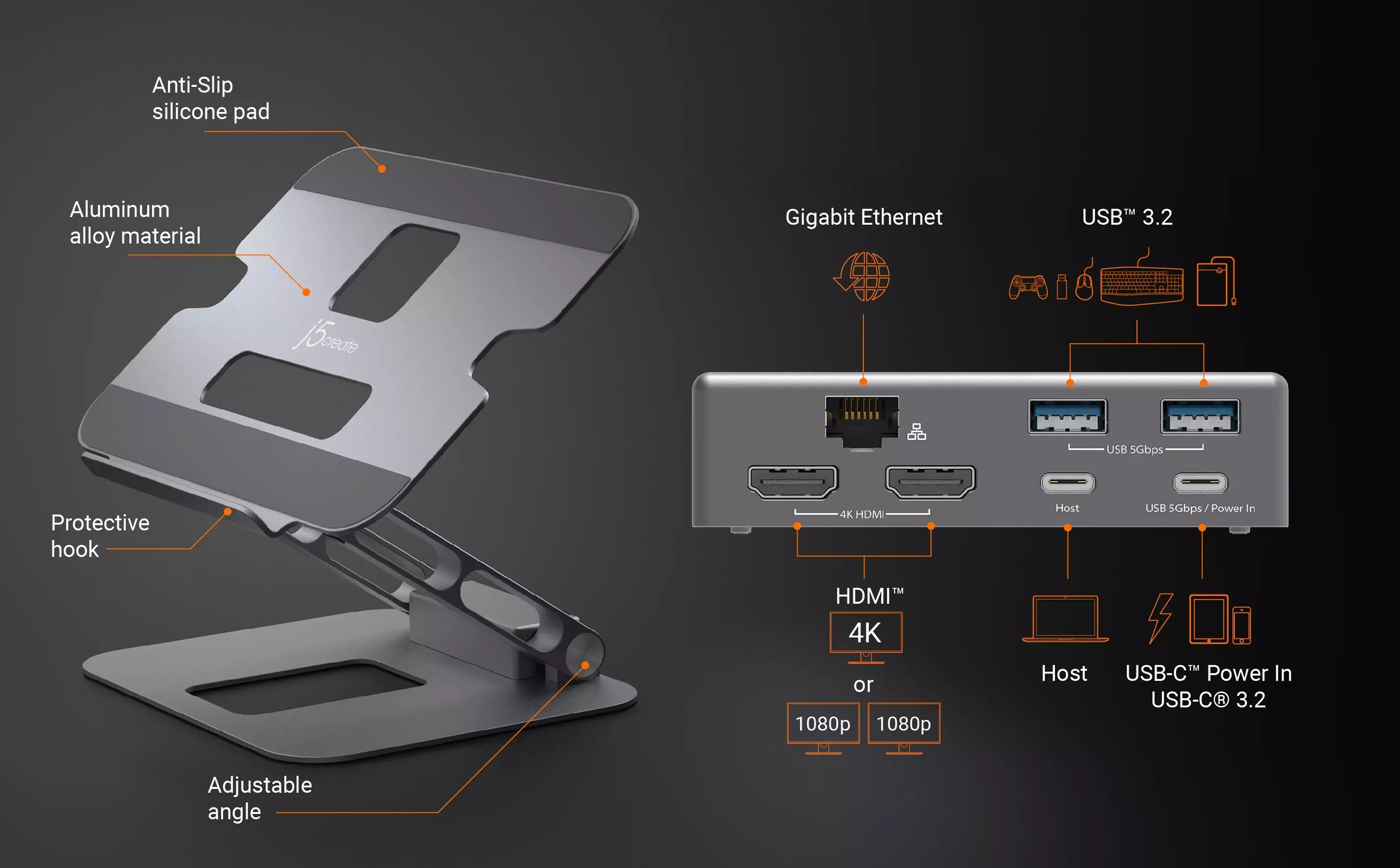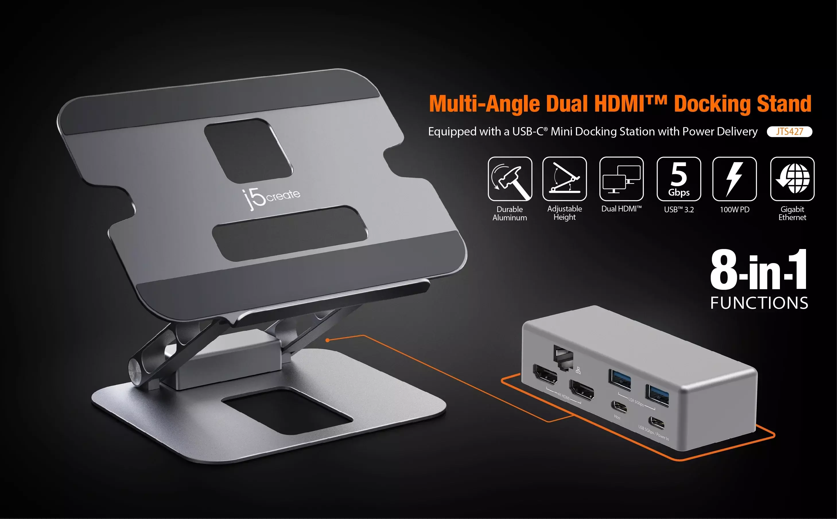 j5create JTS427 Multi-Angle Dual HDMI Docking Stand