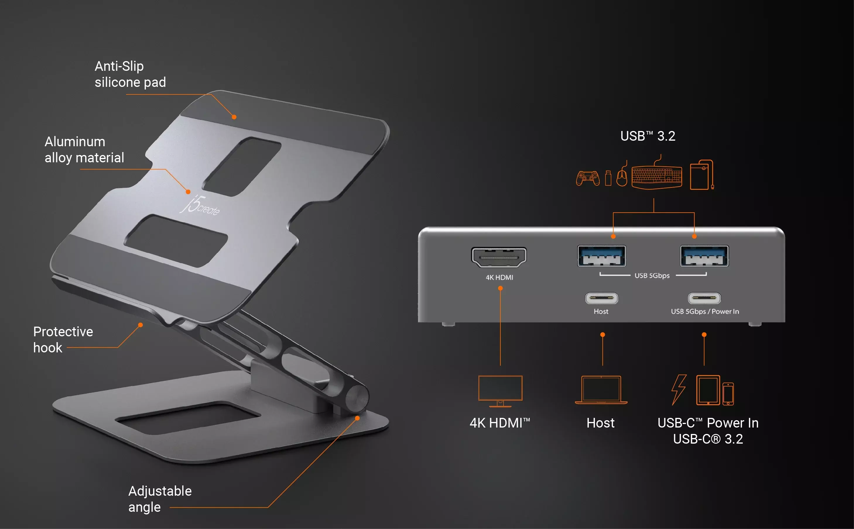 j5create Multi-Angle 4K Docking Stand