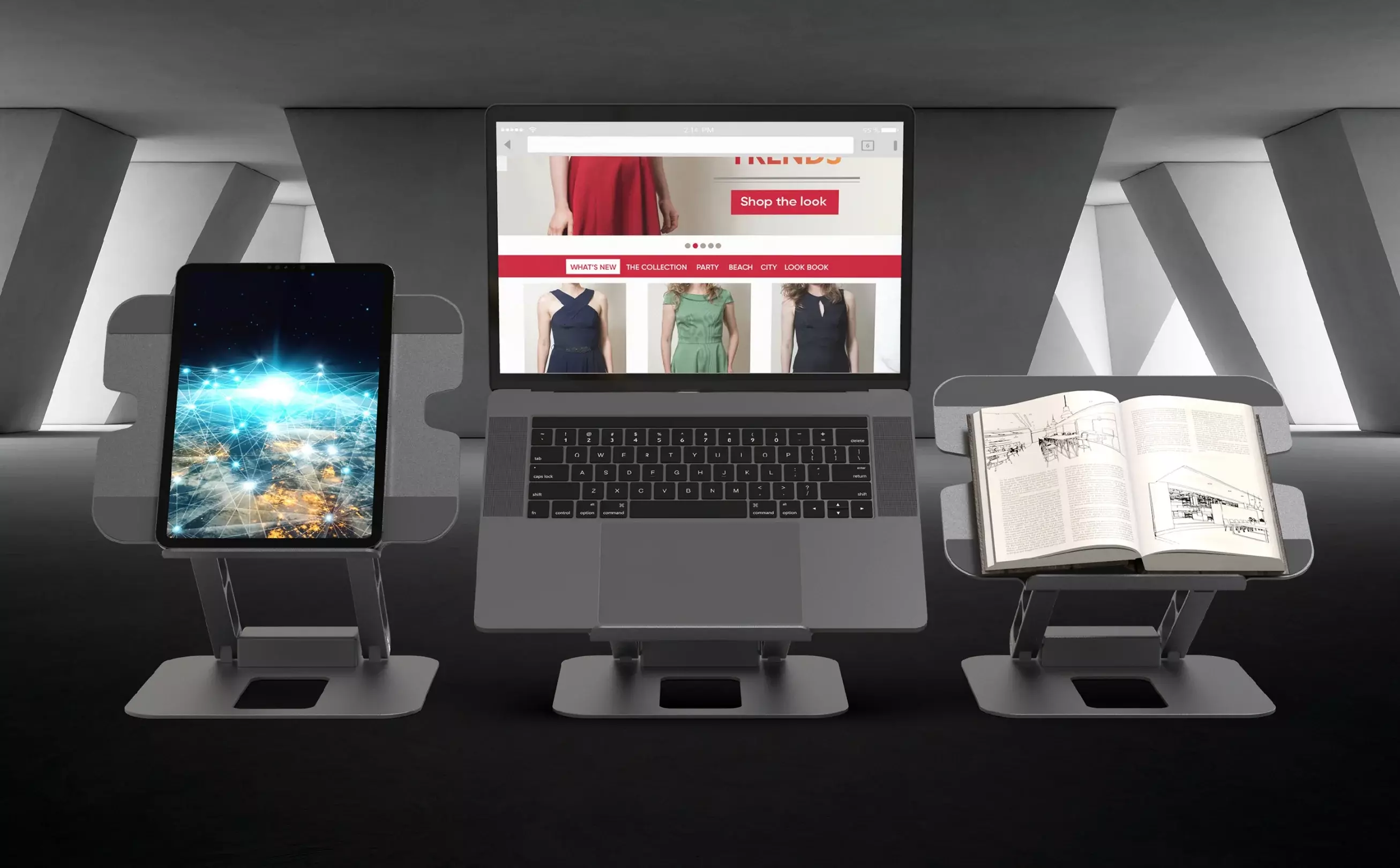 Adjustable viewing angles and heights help reduce eye strain and improve posture