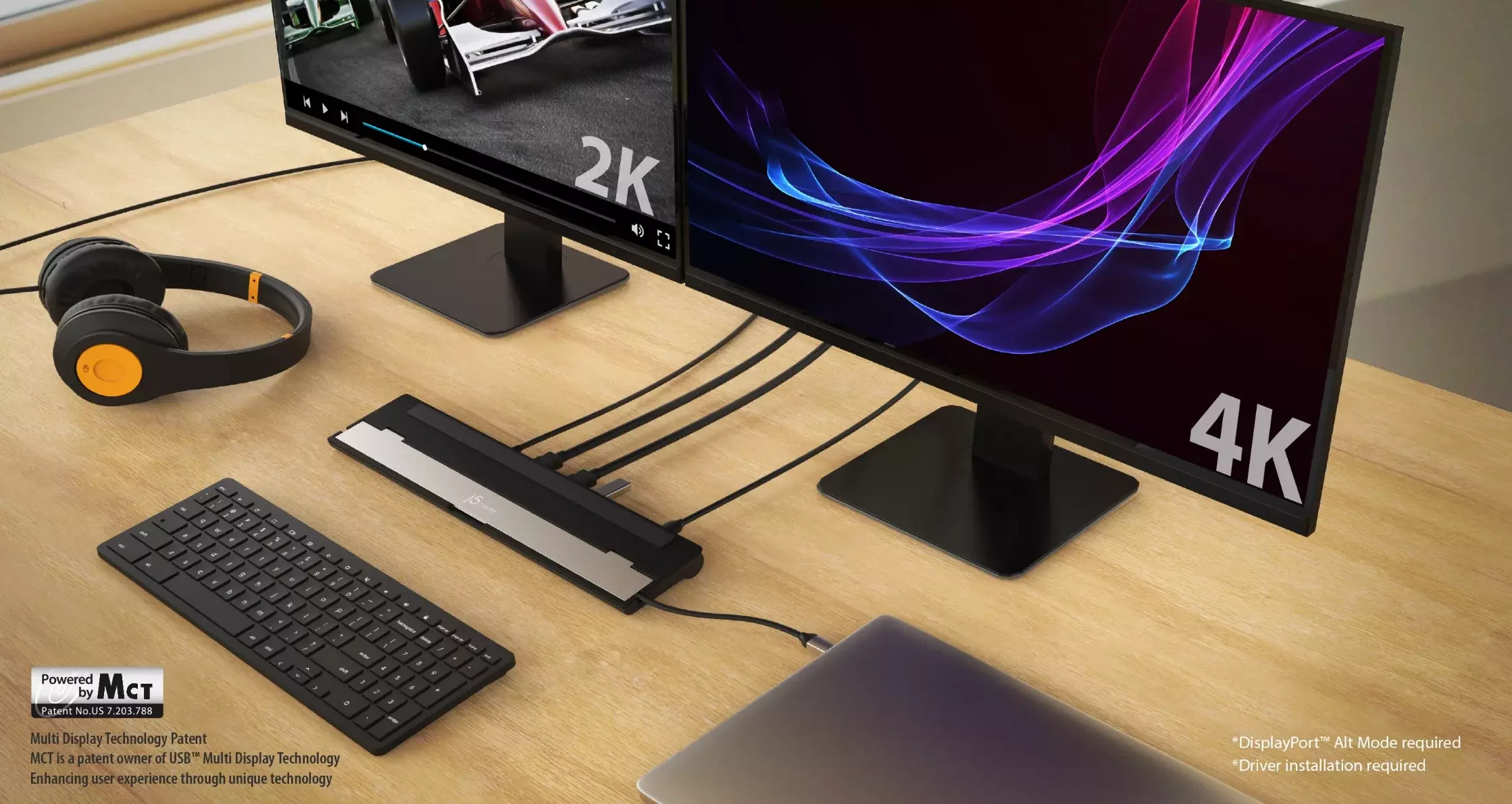 Connect up to 2 external monitors (driver required). Your laptop display, plus the 2 external monitors, gives you a total of 3 monitors.