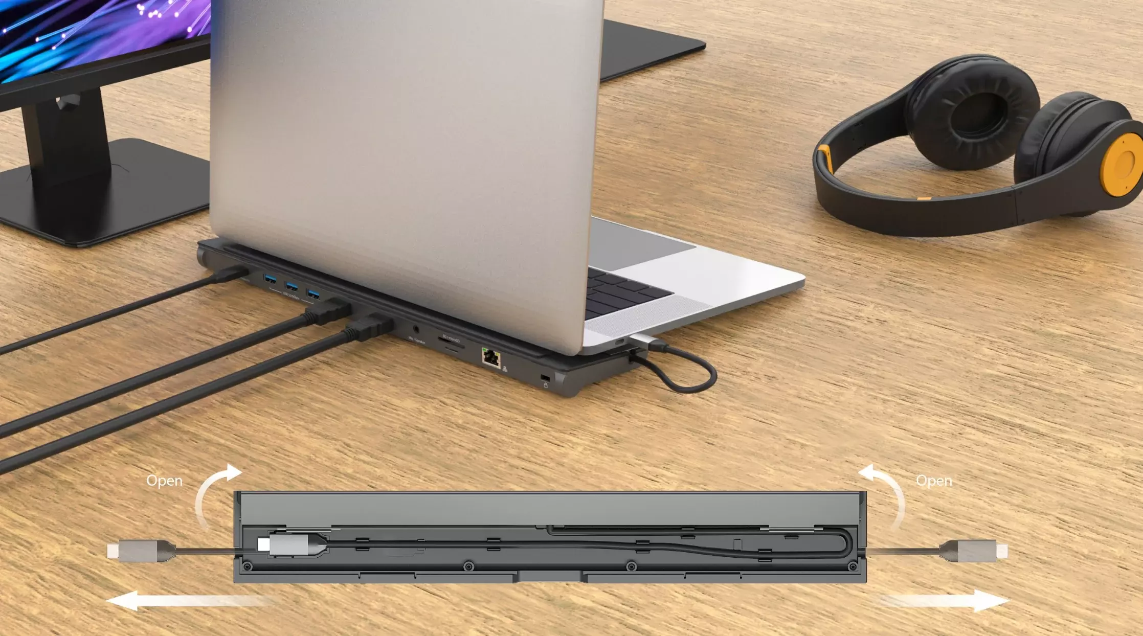 Keep your workspace organized with the double-sided cable storage compartment, giving you the flexibility to place the cable anyway you like.