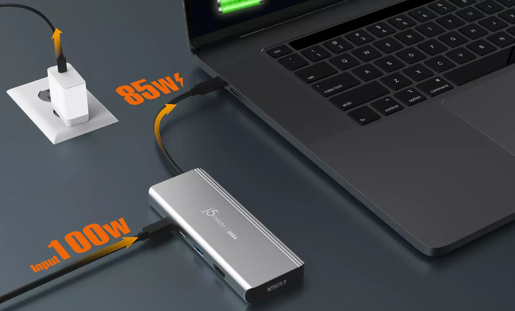 Charges your laptops and provides power to connected peripherals with up to 85W of PD pass-through charging.